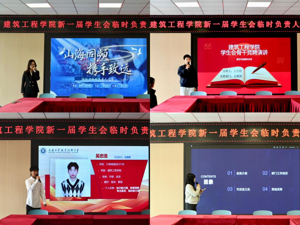 此次学生会临时负责人的竞选大会,不仅为同学们提供了展示自我、锻炼表达能力、提升综合素养的平台,更夯实了学院学生会组织建设基础,明确了后续学生工作的开展方向。后续,学院将综合竞选人的演讲表现、日常工作表现及综合素养,确定最终临时负责人名单。相信新一届的学生骨干定能扛起责任、履职尽责,带领学院学生会各部门高效开展工作,为建筑工程学院学生工作高质量发展贡献青春力量。